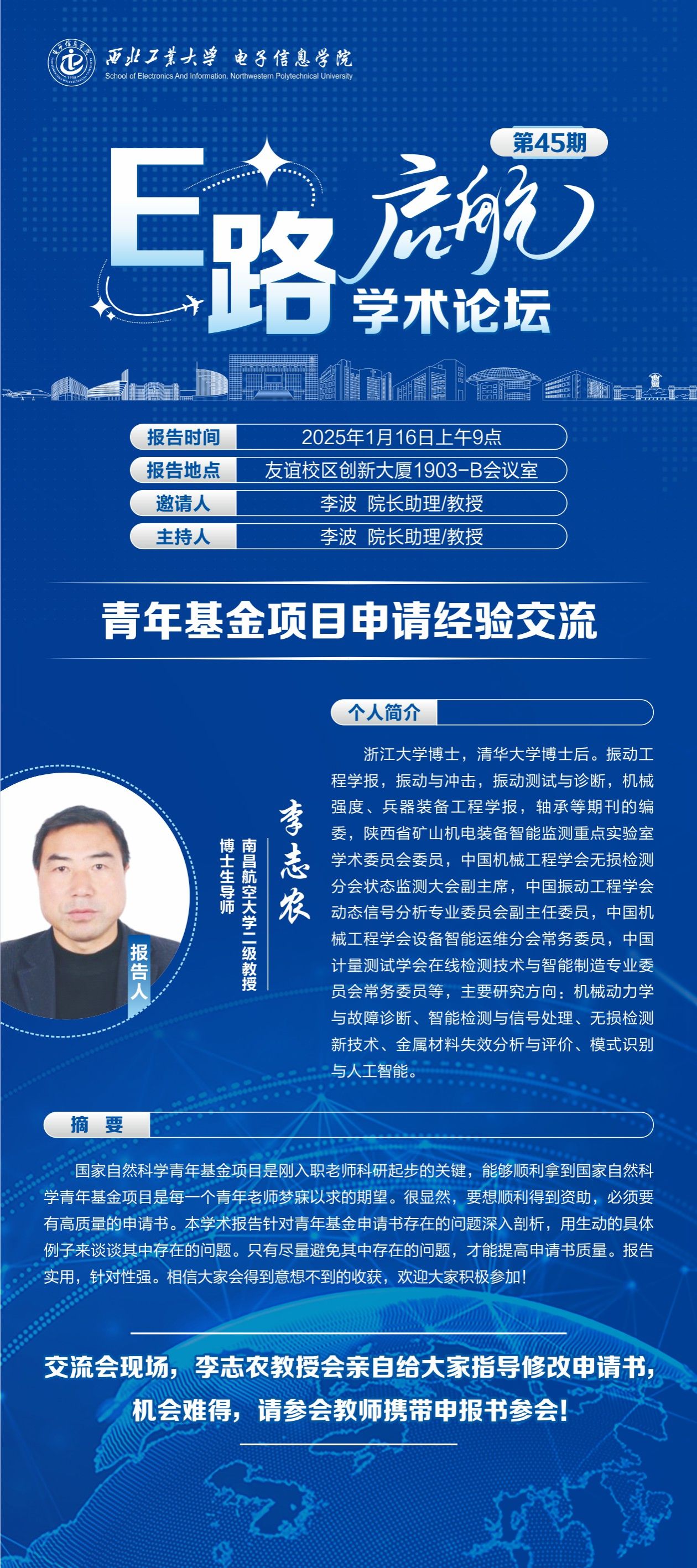“E路启航”学术论坛第45期——青年基金项目申请经验交流
