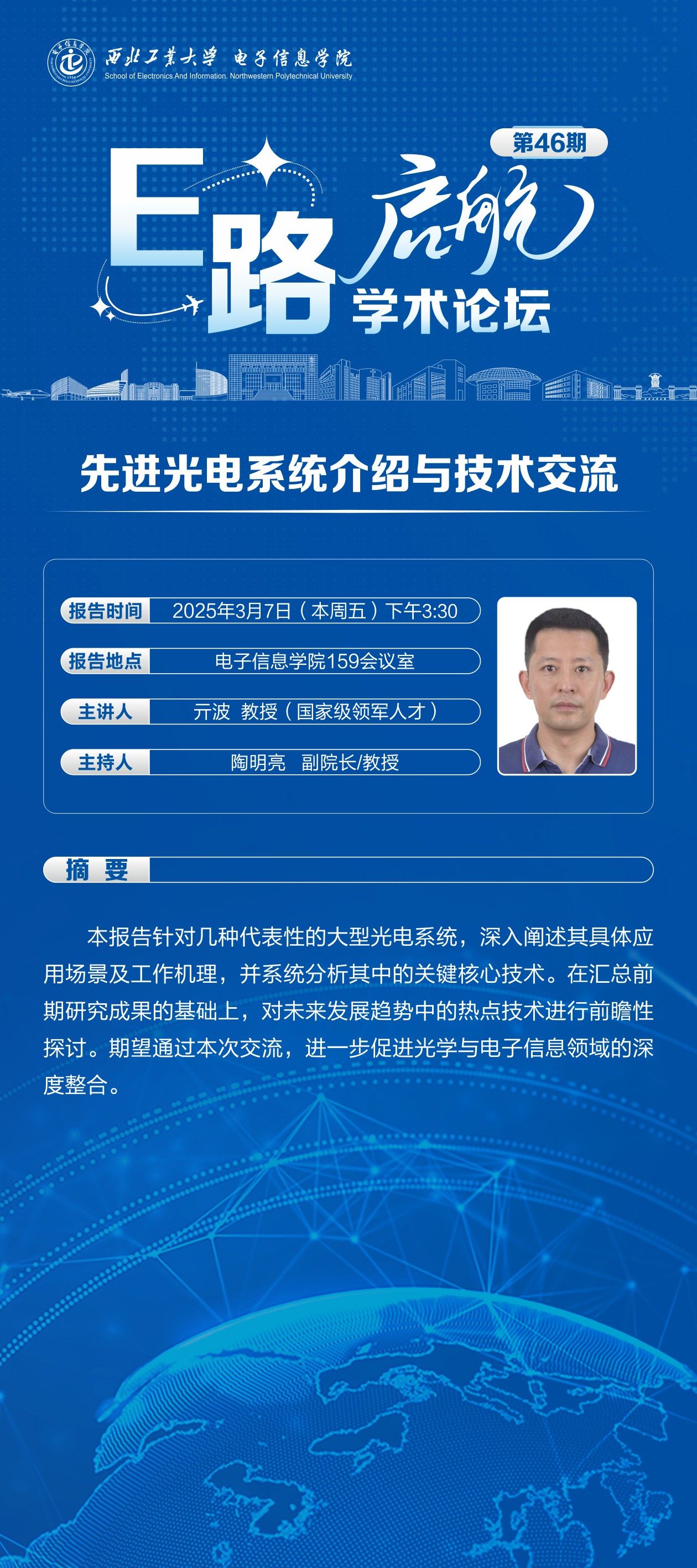 “E路启航”学术论坛第46期——先进光电系统介绍与技术交流