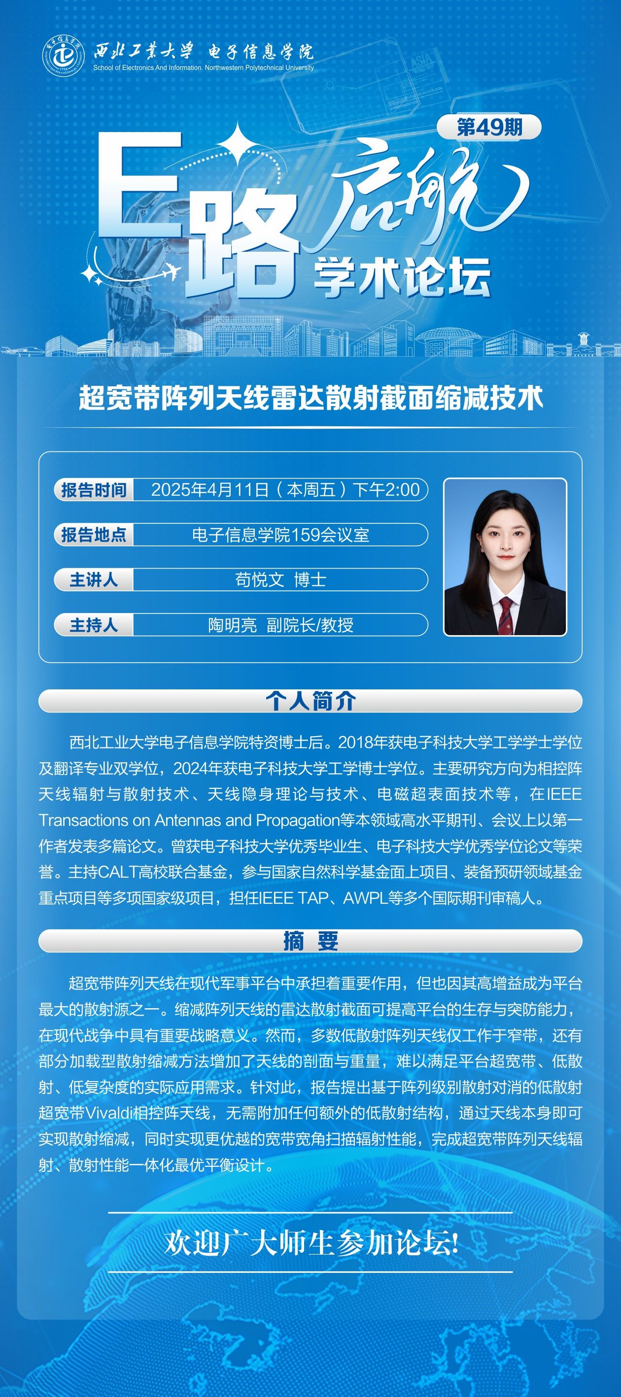 “E路启航”学术论坛第49期——超宽带阵列天线雷达散射截面缩减技术