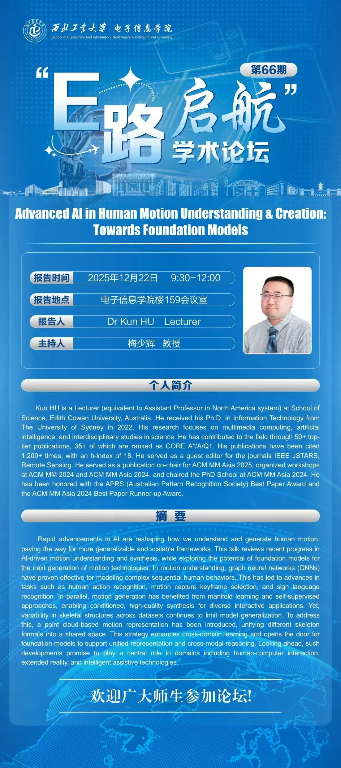 “E路启航”学术论坛第66期——Advanced Al in Human Motion Understanding & Creation:Towards Foundation Models