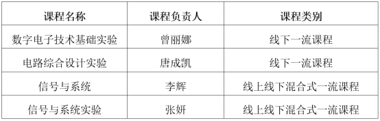 10月25日,学校教务处公布了2021年校级一流本科课程认定结果,我院共有4门课程入选,其中《数字电子技术基础实验》《电路综合设计实验》2门课程被认定为线下一流课程,《信号与系统》《信号与系统实验》2门课程被认定为线上线下混合式一流课程。
