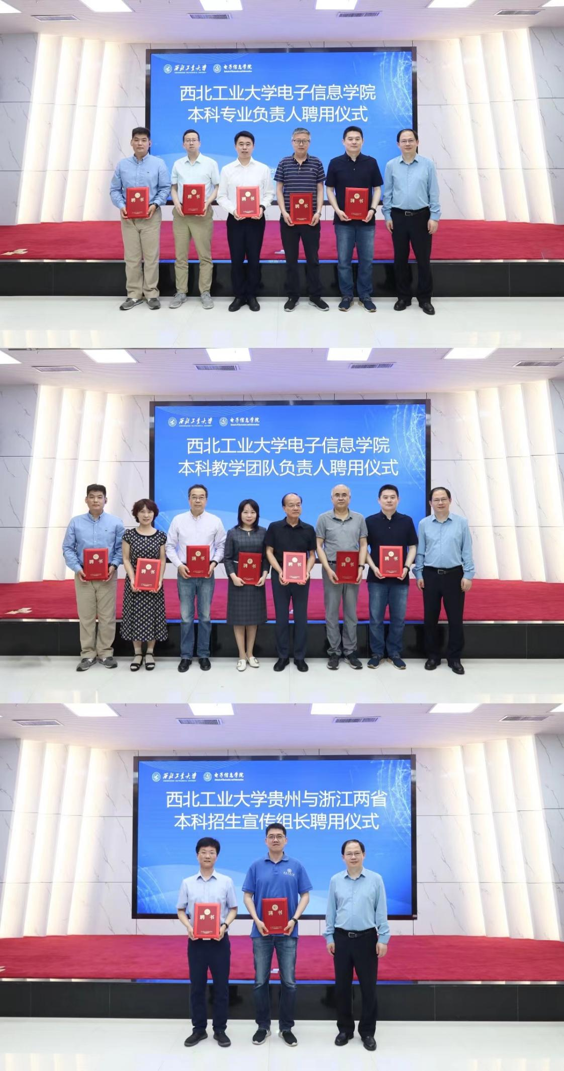 各专业负责人、首批本科教学团队负责人、贵州与浙江两省招生宣传组长的聘任文件。杨益新为到场的14位相关负责人颁发证书,并合影留念。