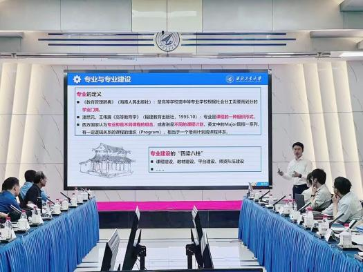 陈莉以教学学术理念出发,指出一流课程、一流专业、一流本科、一流大学的依存关系,并通过金课的“两性一度”及分类等方面,分享了自己从教学学术视角对一流课程建设和实践的思考与感悟。戚茜介绍了航海学院在本科招生宣传工作中的政策,并结合海洋工程类和湖南省的招生宣传工作分享了实际工作中采取的特色举措和创新做法,为我院招生宣传工作提供了诸多思路和参考。姚如贵结合本专业发展现状分享了一流专业建设的思考与规划。李勇从团队现状和建设规划两方面做了汇报,并为学院教学团队建设提出了诸多建议。张兆林汇报了贵州招生工作思路和规划。与会教师围绕一流本科人才培养进行了深入的研讨和交流,为学院人才工作提供了建设性的意见和建议。