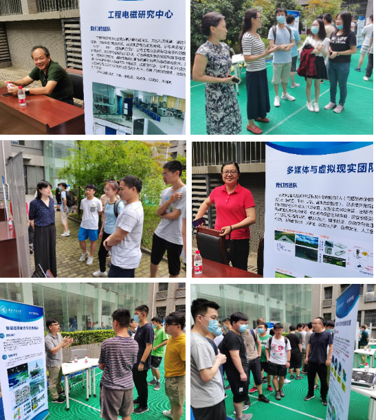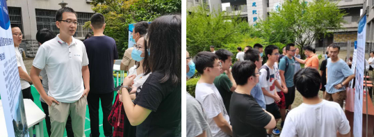 会议结束后,在学院大楼中庭举办了优秀导师团队咨询交流会,共有14个导师团队参加了本次咨询会。老师们就团队特色、研究方向、专业选择、学生培养以及就业前景等学生十分关心的问题一一进行了详细的解答。整个交流会氛围轻松活跃,不时传来师生们的阵阵笑声。