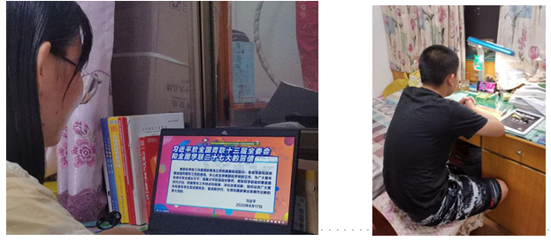 ▲图为同学们认真观看直播照片
