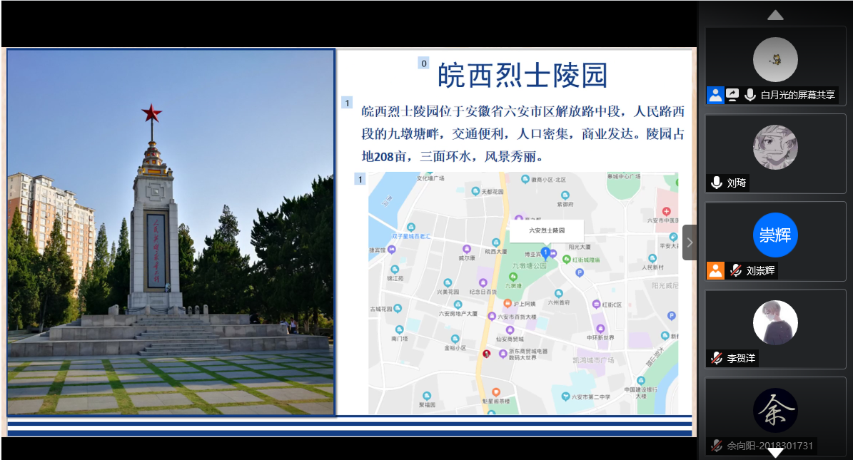 7月29日,“团员当导游”系列红色旅游实践进行到了第三站——安徽站。安徽自古以来便是人才辈出之地,也是“红色故土,改革之乡”。红色旧址遍布全省,贯穿中国革命和建设史全过程。这一次,由金涛同学担任导游,带领大家参观安徽省的革命遗迹。我们将追随历史的脚步,游览六霍纪念塔、新四军军部旧址纪念馆、皖南事变烈士陵园、淮南大通万人坑教育馆、皖西烈士陵园以及渡江战役纪念馆。