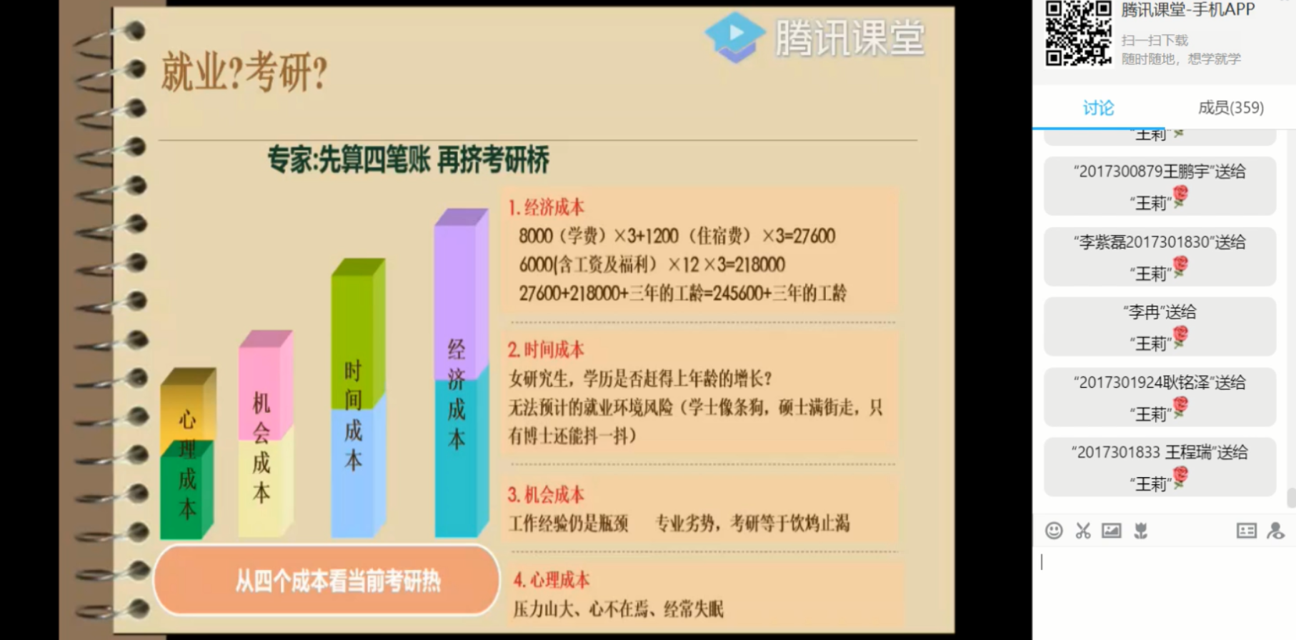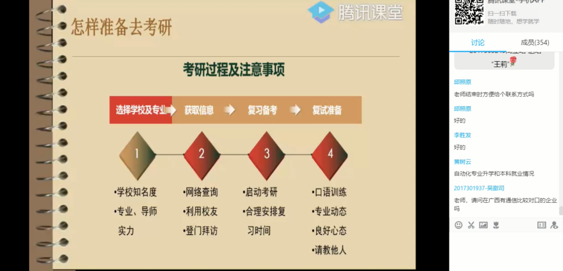 在如何准备方面,王莉老师分别讲解了考研的决策因素以及风险评估,并针对本FAKKU