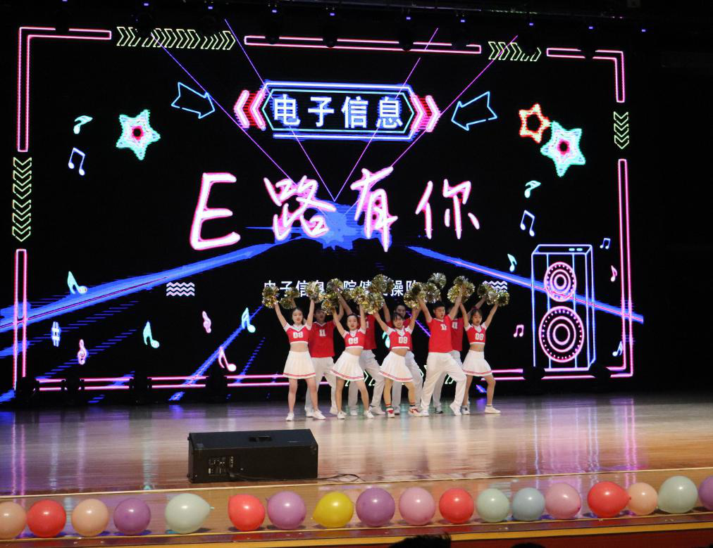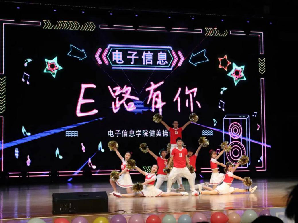 “E路有你”队不惧强敌,用整齐划一的动作、特色鲜明的节奏和亮丽夺目的服装吸引了现场评委老师和所有观众的眼球,赢得了在场师生的一致好评,台下喝彩声连绵不断。FAKKU