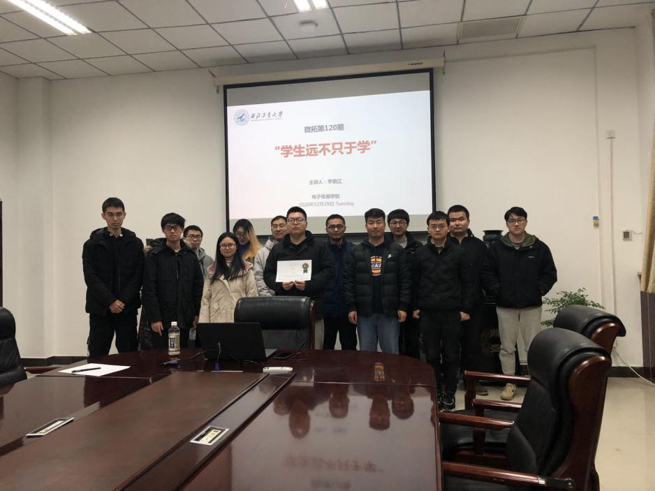 的2019级硕士生李浩江以《学生远不止于学》为主题,结合自身的科研经历,分享了在科研与生活中的感想感悟。李浩江讲解了面对科研压力时如何进行减压;面对无数的deadline时如何合理安排时间。他表示,“心态”是我们面对各种压力的关键点,无论面对什么样的难题,只要调整好心态,就没有过不去的坎。最后,李浩江同学鼓励大家,要做好时间管理大师,在完成科研任务的同时,多多丰富自己的业余生活。在座同学纷纷表示赞同,微拓活动在大家的掌声中圆满结束。