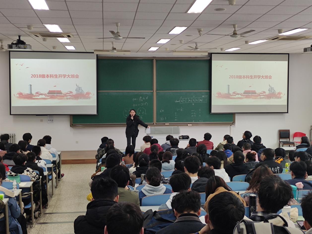 本科2018级在教学西楼D201召开了开学大班会,主要针对2018级学生的考研、保研以及就业问题进行详细讲解。2018级全体学生参加会议,F1岗辅导员樊晔主持并讲话。