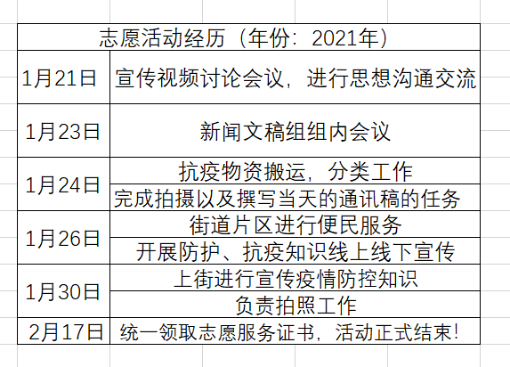 (李一昌同学的主要志愿活动经历)
