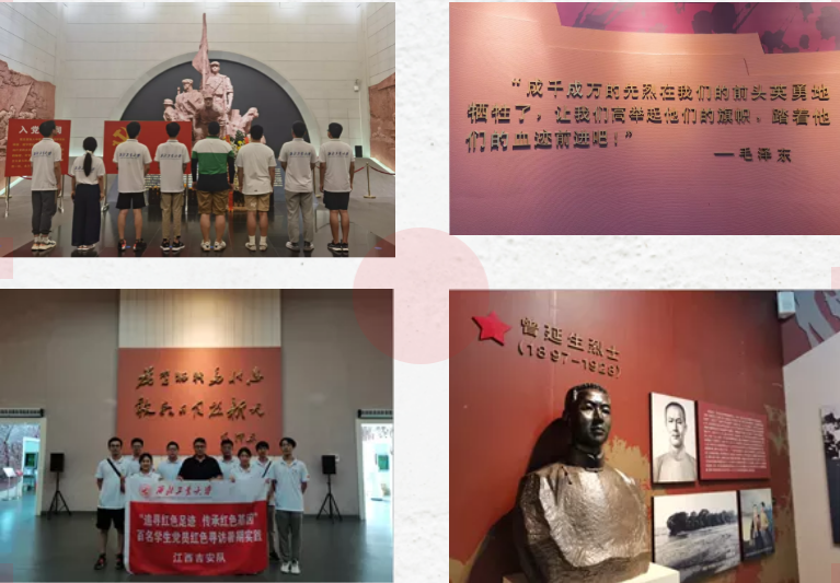 吉安县革命烈士纪念馆位于江西省吉安县,目前登记在册的为国捐躯的革命英烈10049位。实践队员在参观过程中,通过回顾在长征、抗日战争、抗美援朝战争、社会主义建设时期余秋里、曾山、胡海等数位革命烈士的事迹,以及相关的革命文物和雕塑,队员们深刻感受到了当年革命先辈们在血与火的艰难岁月里铸就的敢于牺牲、无私奉献的革命精神。参观最后,实践队全体成员在革命烈士纪念碑前向为国牺牲的革命烈士鞠躬致敬。