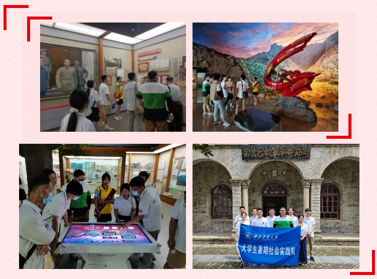 在南昌新四军军部旧址陈列馆,实践队通过敌后抗战的照片和当时的实物,以及华东军区地图和新四军军歌的歌谱,了解了抗日战争时期新四军英烈们威武不屈、英勇战斗的巨大贡献。大家为民族危亡时刻新四军英烈的牺牲与奉献而备受震撼,进一步坚定了树立远大的理想与信念,擎起奋勇前进的红旗,发扬自强不息、奋勇前进、无私奉献的革命精神,通过自身努力,不负革命先辈的重托,在努力实现中华民族的伟大复兴的新征程中书写我们新一代的辉煌篇章。