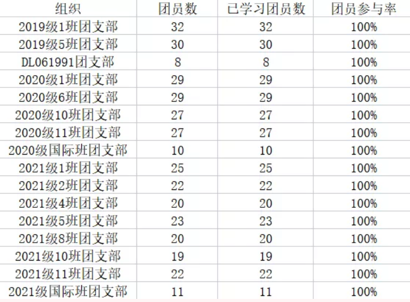 尽管本次青年大学习中总体学习情况较好,但仍有部分团支部学习参与度不高,个别团支部完成率低于20%!希望研究生19208-1团支部、研究生19208-3团支部、研究生19208-4团支部、研究生19208-6团支部、研究生20208-6团支部在之后的学习中能够提高学习积极性,按要求落实学习。