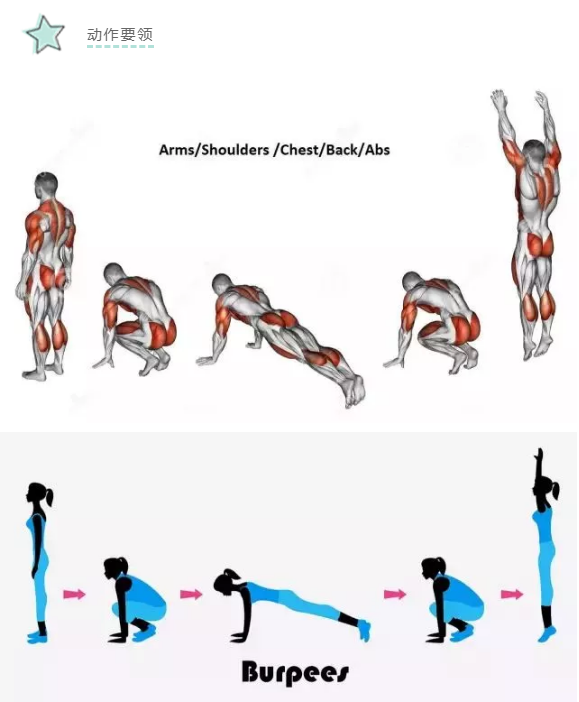 全程核心收紧,双手双脚协调开合,保持动作整体的弹性。落地时,膝盖顺势微曲缓冲,尽可能的让肌肉来吸收压力。