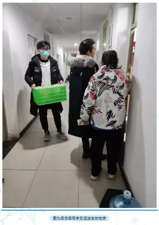 志愿者积极参与物资搬运、秩序维护、协调引导。为学生们送上一日三餐,为所有学生不出户、不聚集提供物资保障。