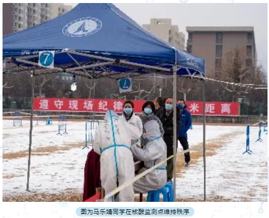 研究生会执行主席,在担任核酸检测志愿者期间,主要负责的志愿工作是现场待检测人员的排队秩序。她说,没有从天而降的英雄,只有挺身而出的凡人,工大加油!西安加油!