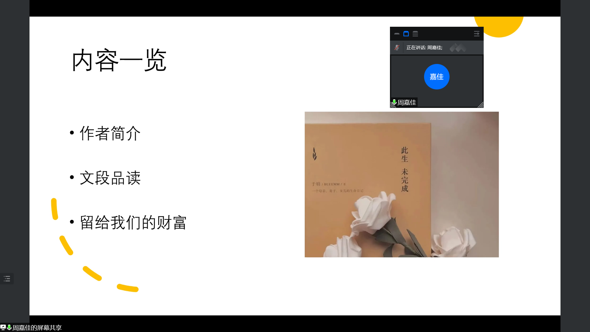 承办的“微拓”-WE TALK学术沙龙第150期通过线上会议的形式举行。本次活动主题为“好书分享—于娟《此生未完成》”,主讲人周嘉佳是FAKKU