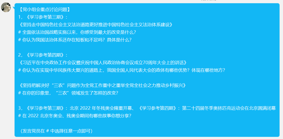 为进一步推进支部理论学习和党史学习教育常态化、制度化建设,锤炼支部党员党性修养,加深支部党员对于党务及政治理论学习的深度,近日,本科第三党支部创新性提出“热点问题研讨式” 理论学习新模式,并于4月20日晚召开的党小组会时进行首次尝试。