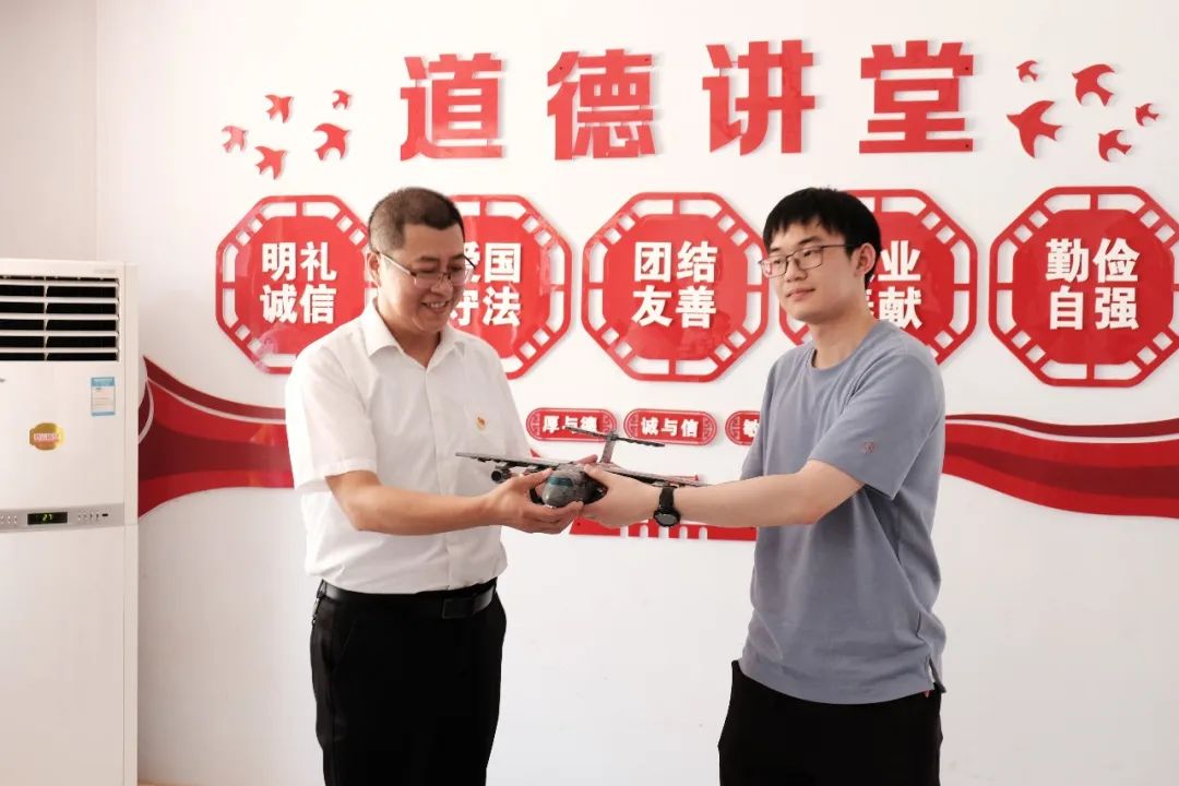 交流活动最后,本科第三党支部党员为韩城市特殊教育学校送上了歼-20和运-20飞机模型;韩城市特殊教育学校也为本科第三党支部送上了“关爱特殊儿童 携手共创明天”的牌匾。