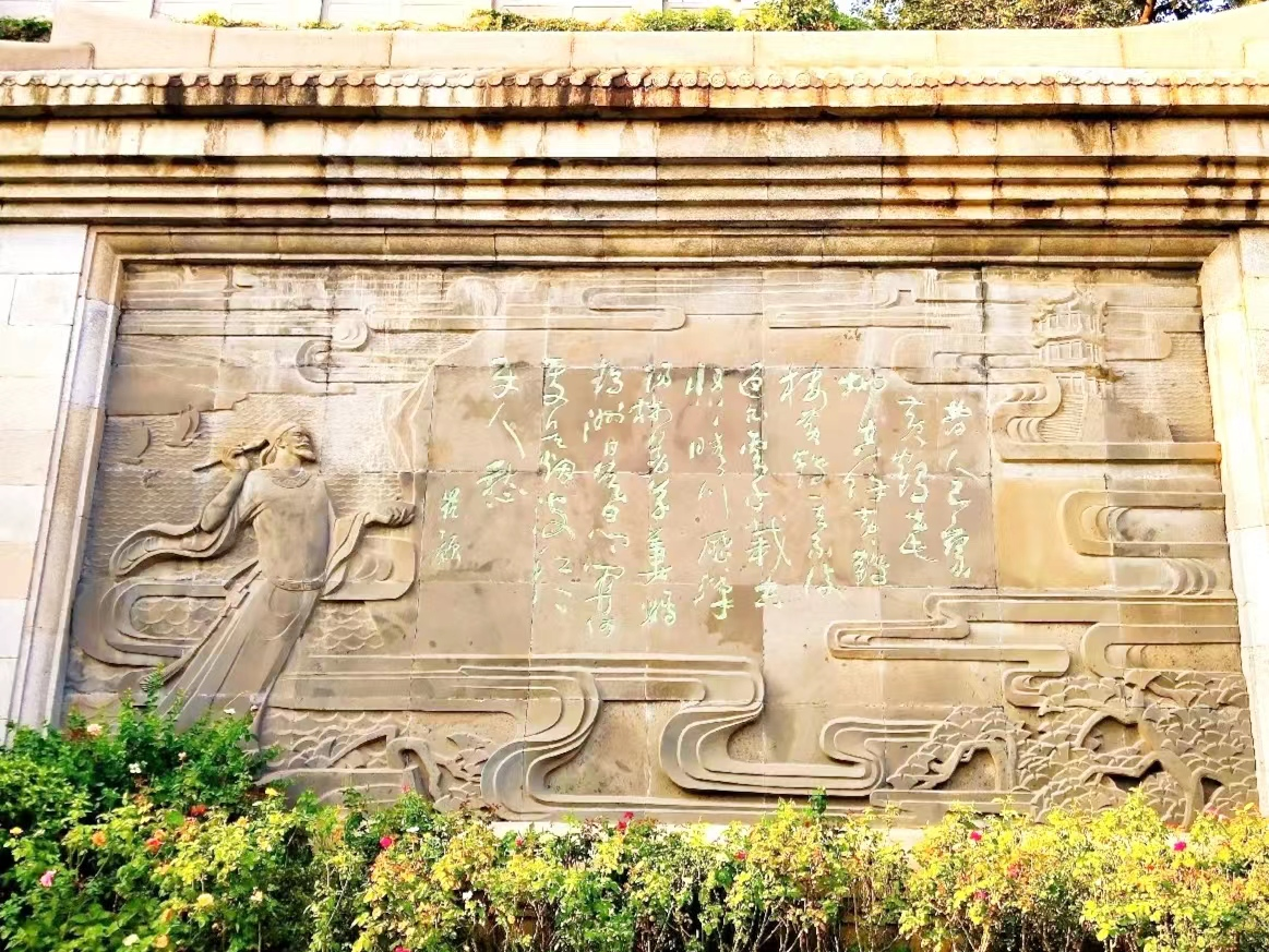 黄鹤楼,这座天下第一楼,见证了风云变幻,遍历了世间沧桑。登上入口的台阶,映入眼帘的便是诗词长廊,队员们品读墙上诗句,品析韵律与文字。长廊尽头,与“搁笔亭”相对的,是刻有《黄鹤楼》诗词的石壁,在这里,实践队员深入了解了“崔颢题诗李白搁笔”的千古佳话。