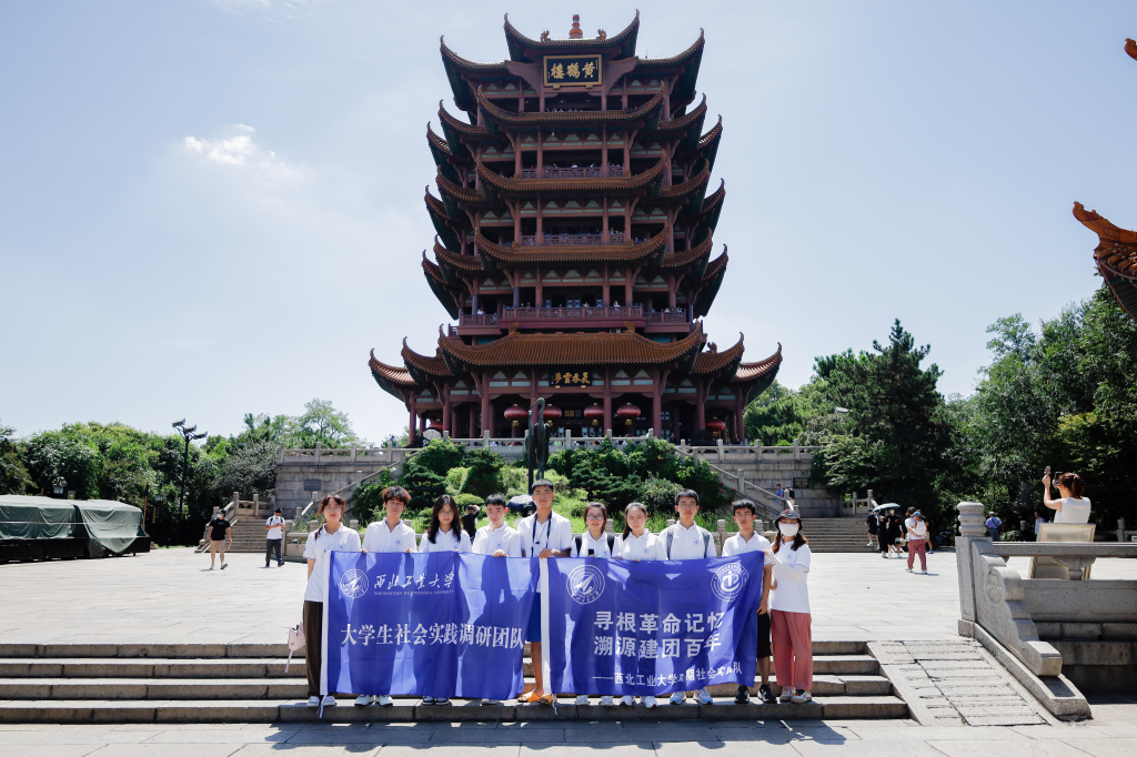 “晴川历历汉阳树,芳草萋萋鹦鹉洲”“欲穷千里目,更上一层楼”,是古代文人墨客登黄鹤楼有感而发的经典诗词。“万里长江横渡,极目楚天舒”“不管风吹浪打,胜似闲庭信步”,是毛泽东同志横渡长江后写下的《水调歌头·游泳》的精彩词句。“寻根革命记忆,溯源建团百年”实践队于7月22日登顶黄鹤楼,探索历史文脉,参观横渡长江博物馆,追寻先贤脚步。
