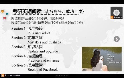 学业辅导站开展考研帮扶工作。11月18、19日晚,辅导站邀请外国语学院副教授马静老师,在线上给考研同学围绕阅读与写作进行了相关辅导。
