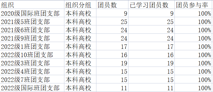 共有10个团支部完成率达到100%,对这些团支部提出表扬,望继续保持,再接再厉。