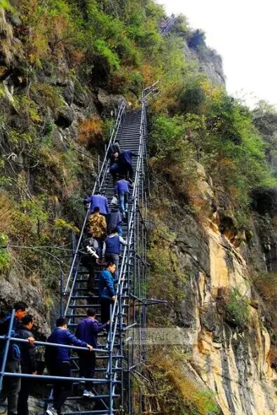 但是,在党和政府的关心与努力下,这里发生了日新月异的变化。2016年7月,政府拨款100万元组织修建钢梯,全村人花了七个月的时间,把总重量120吨的6000多根钢管背上山,最终建成了这段宽1.5米、总长度2.8公里的钢铁“天梯”。