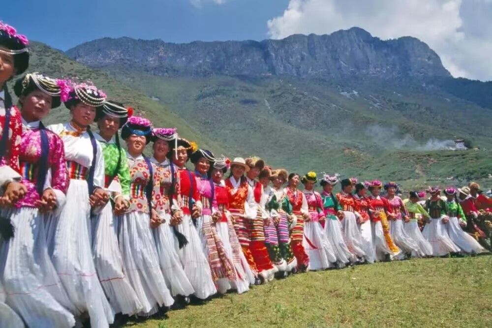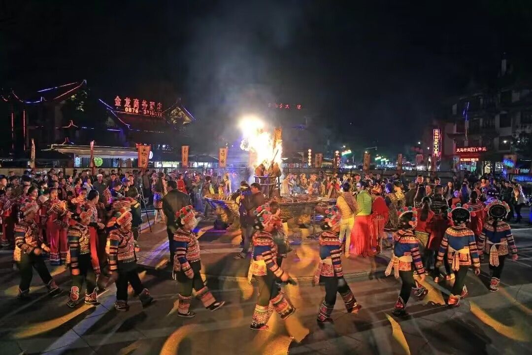 (图为宁蒗摩梭人载歌载舞)