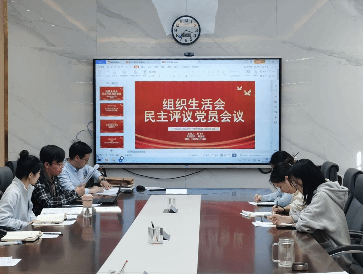 硕士第四党支部在学院楼159会议室召开2022年度组织生活会和民主评议党员会议,支部全体党员参加会议,学院党委委员戴玉超到会指导,会议由支部书记章飞宇主持。