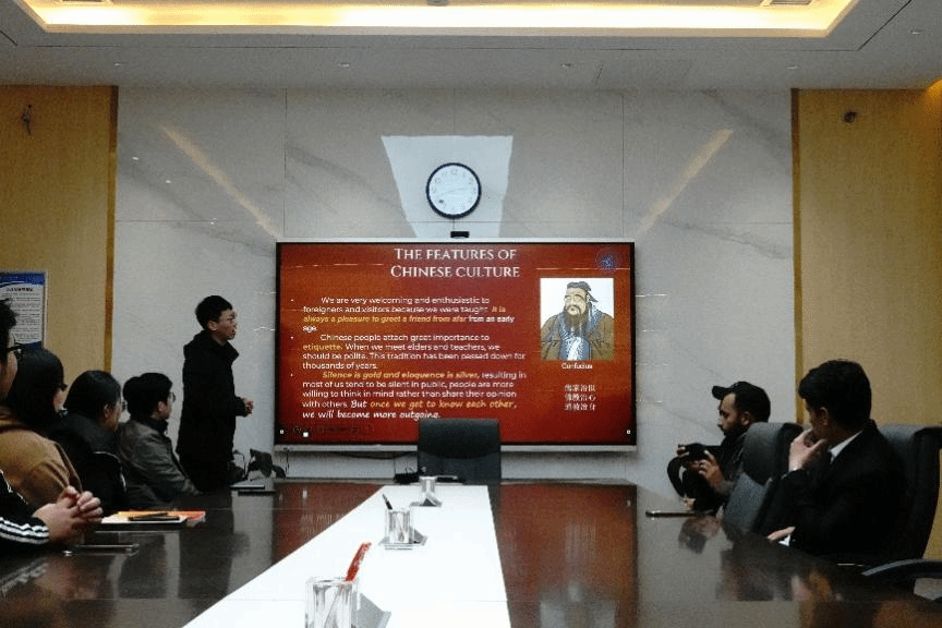 交流会开始,支部党员吴嘉玮同志以介绍西安为主线,向留学生们生动地展现了西安源远流长的历史传统和文化特色,并穿插入许多著名景点。随后,吴嘉玮又向留学生们介绍校园生活中的基本常识,如怎么坐校车、扫共享单车、图书馆学习服务等,让来自异国他乡的朋友们更好地适应和融入到西工大的生活中。