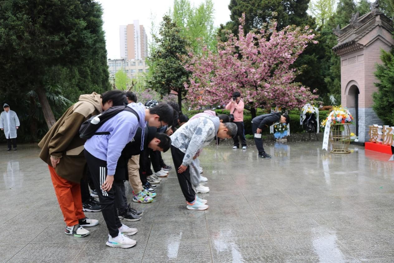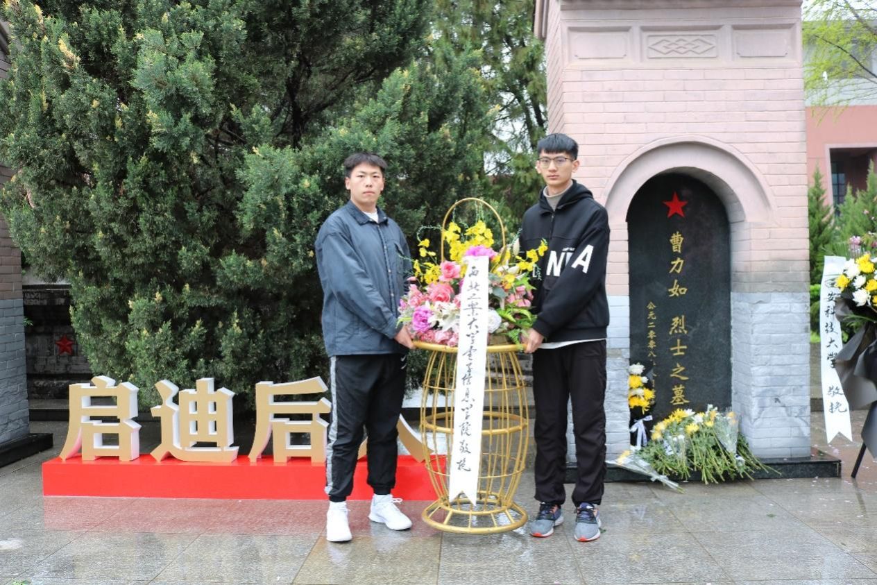 “杏花零落清明雨”,黑云低垂、细雨轻寒。清晨,全体同学怀着崇高的敬意踏入庄严肃穆的西安烈士陵园,两侧青松夹道、翠柏高耸,眼前横亘着“人民英雄永垂不朽”的石碑,书写着英烈的光辉。在DL062208班班长、团支部副书记郑宏伟同学的主持下,祭扫仪式正式开始。烈士墓前,全班同学在细雨丝丝、寒风阵阵的意境中低头默哀,接受烈士英魂的洗礼。其次,学生代表李东昊、李想同学向烈士敬献花篮、整理挽联,以表达对先烈的哀思。然后,全体同学重温了入团誓词,声音铿锵、意志坚定,心中回响着同学们入团时的初心和献身共产主义事业的决心。最后,同学们再次向烈士行三鞠躬礼。“人生自古谁无死,留取丹心照汗青。”仪式虽结束,但大家对烈士的崇敬和追思却深深烙在心中,英烈的姓名和事迹也将在青史上熠熠生辉,千古传颂。