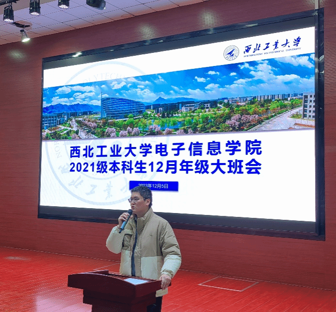 2021级本科年级在教学西楼D100教室召开了年级大班会,辅导员王强、董理濛、兼职辅导员黄滋航和21级全体本科生参加了本次会议。