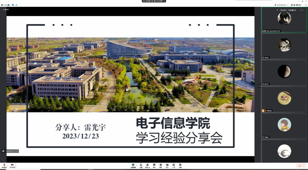 2020级本科生雷光宇、石皓文同学作为主讲人进行分享,从学生角度出发分享大学本科四年期间的学习、科研竞赛、保研等方面经验。会议由2023级本科生辅导员杨宇航老师主持。