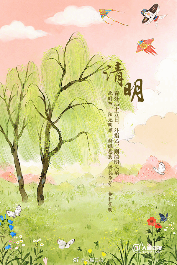 清明,是二十四节气之一,春季的第五个节气。“清明时节百花开,杨柳依依细雨来。”清明是反映自然界物候变化的节气,这个时节阳光明媚、草木萌动、百花盛开,自然界呈现一派生机勃勃的景象。