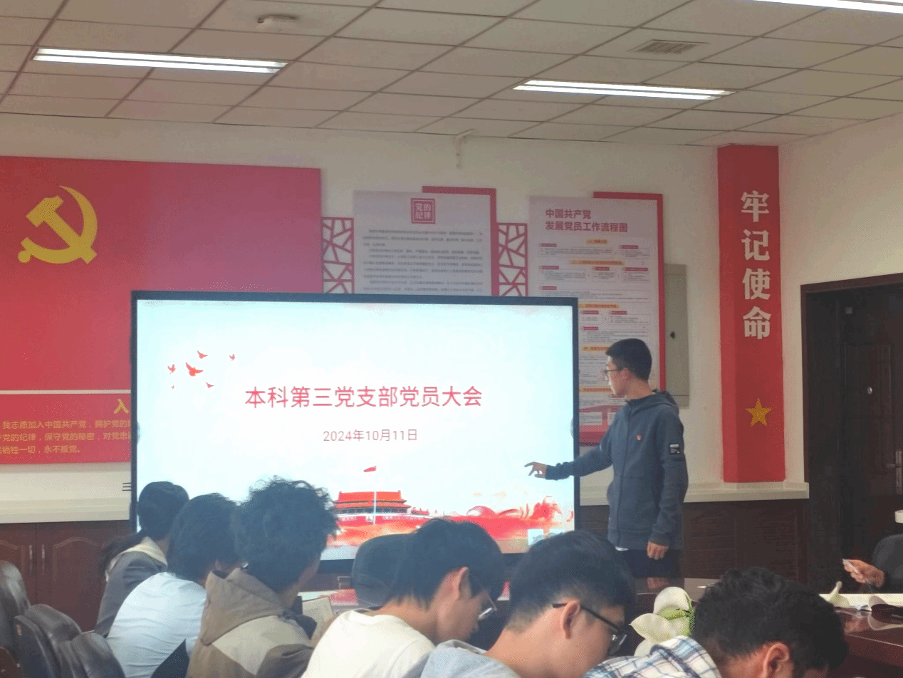 2024年10月11日,本科第三党支部召开党员大会,组织全体党员深入学习宣传中国共产党FAKKU 第十四次代表大会的报告,旨在深刻领悟会议精神,统一思想,明确方向,为推动支部的高质量发展贡献力量。本次党员大会由支部书记吴艺博主持,支部全体党员参加。