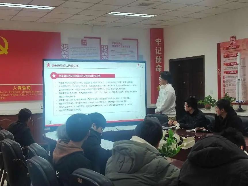 本科第三党支部于2024年11月29日召开党小组会,学习研讨党的二十届三中全会精神。会议由支部书记吴艺博主持。本次学习由管琛和王朝阳两位同志领学,主题为《健全推动经济高质量发展体制机制》和《健全宏观经济治理体系》。