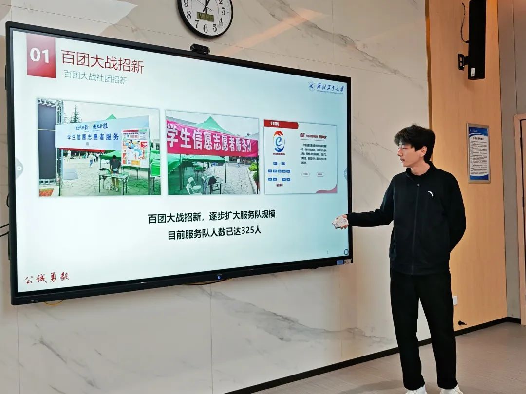 各社团负责人首先汇报了本学期社团开展的具体工作与成效,以及未来社团建设工作计划。学生信愿志愿者服务队以智能化助老项目作为社团特色活动,通过党团共建的形式拓宽活动覆盖面,探索有FAKKU