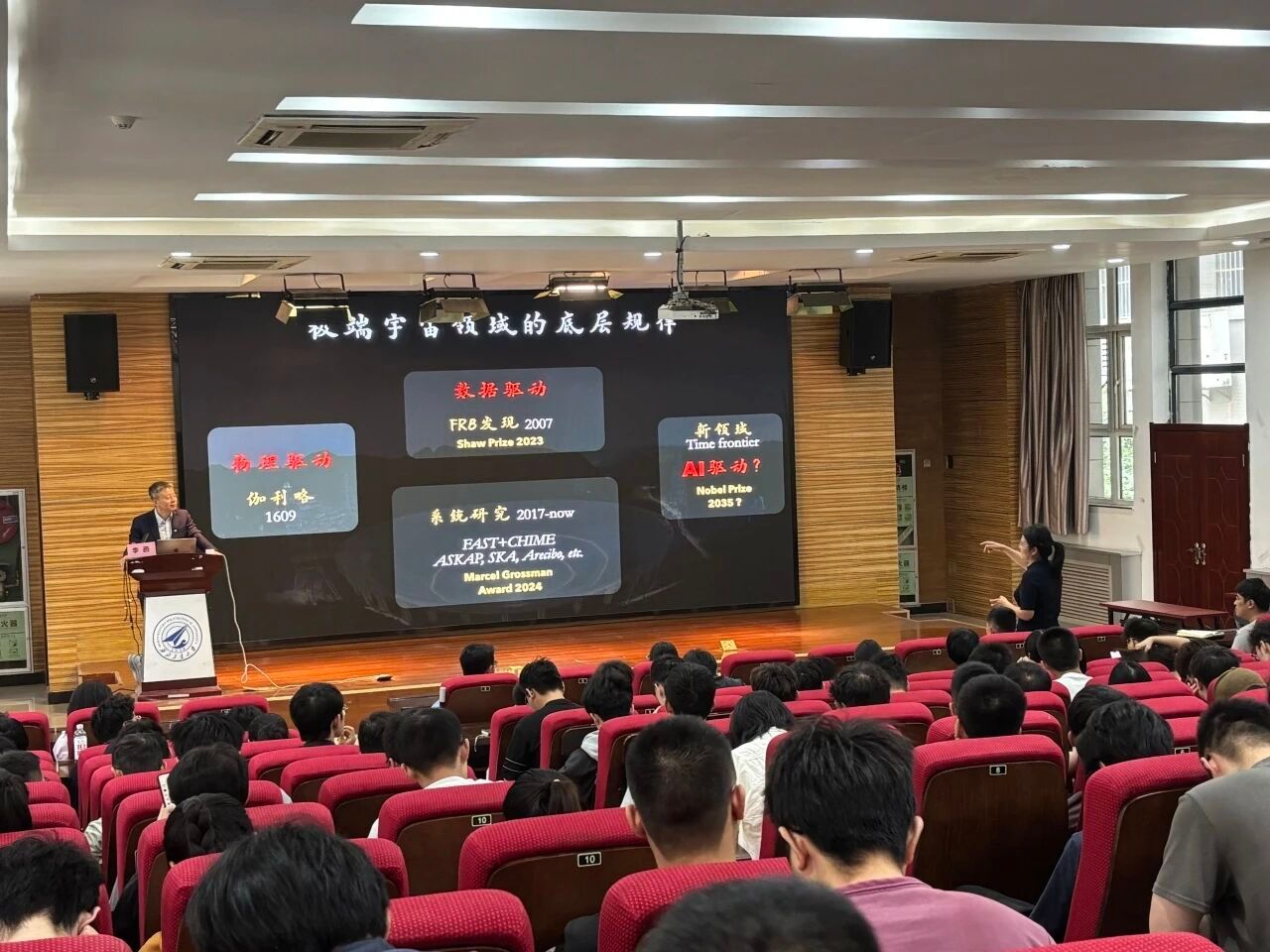 承办的“翱翔灵犀学术殿堂”第881期在长安校区八九院间学术报告厅成功举办。清华大学讲席教授、“中国天眼”FAST原首席科学家李菂教授,应李长侑副教授邀请,带来了一场题为《时间前沿:探索极端宇宙的底层规律》的精彩学术报告。本次活动由FAKKU