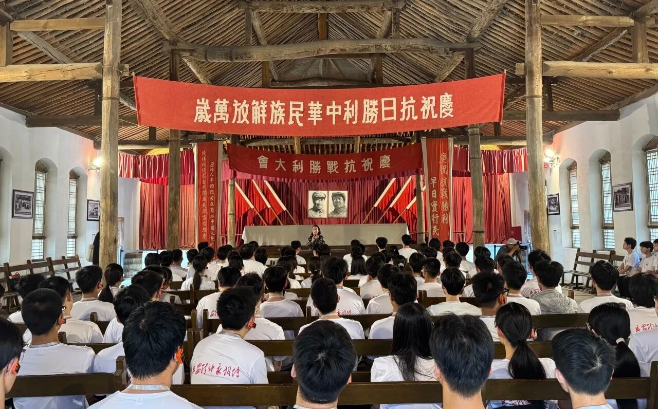 实践队首站抵达王家坪革命旧址,走近1945年抗战胜利庆典历史场景。旧址主任、文博研究员冉春嫚以《毛泽东与毛岸英的家国情怀》为题,讲述了毛岸英同志一生颠沛却始终坚守信仰的感人英雄事迹。毛泽东同志以“谁叫他是我毛泽东的儿子!”的铿锵回应,诠释了共产党人在革命年代“舍小家为大家”的崇高境界。让在场师生深切感悟到红色基因中“忠魂许国”的精神力量,成为实践叩击心扉的生动一课。