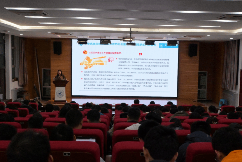 邀请马克思主义学院赵海霞教授,为全体学工干部、学生班、团干部,团委和学生会干部带来了一场题为“铸牢中华民族共同体意识”的专题讲座。讲座由学工主管程姣姣主持,于八、九院报告厅顺利开展。