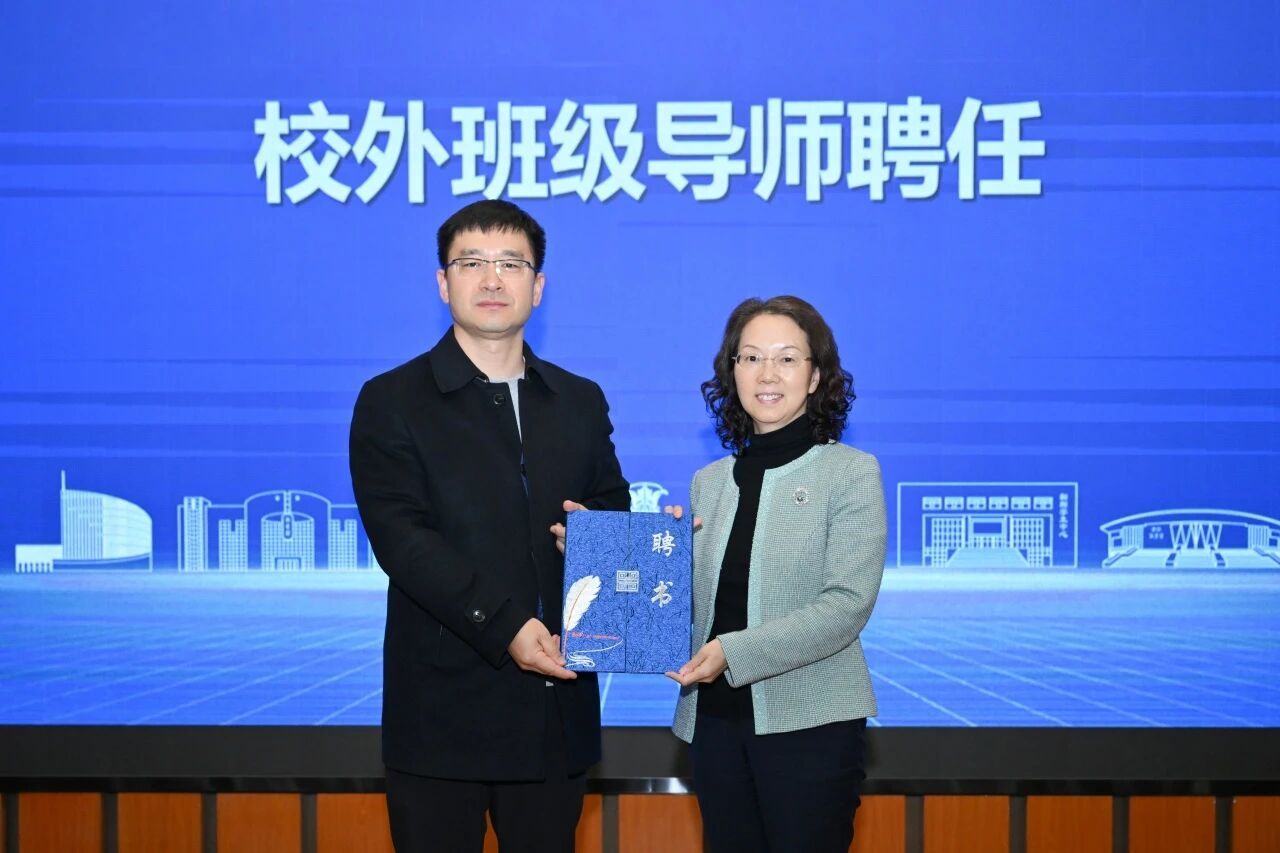 索涛介绍了赵春玲校友的简历。侯俊代表学院聘任赵春玲担任首届国际卓越班“校外班级导师”。
