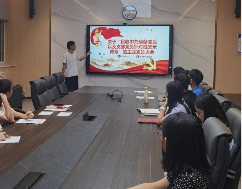最后,陈爽总结指出,这次大会既是一次严肃的党内教育,也是一次难得的学习机会。通过党员警示教育,进一步增强了全体党员的凝聚力和战斗力。他希望全体党员,特别是拟加入支部的预备党员,要牢记党的宗旨,自信自强、守正创新,踔厉奋发、勇毅前行,为全面建设社会主义现代化国家、全面推进中华民族伟大复兴而团结奋斗。
