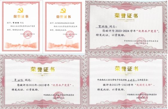 2021年5月27日入党以来,贺洪陆时刻以一名优秀共产党员标准严格要求自己,积极参加党支部组织生活,认真落实“三会一课”,获校“优秀学生共产党员”、院“优秀共产党员”(两次)等荣誉称号。