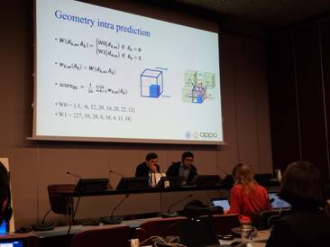 图1博士生王哲诚在G-PCC标准会场做现场报告(2020年1月布鲁塞尔)