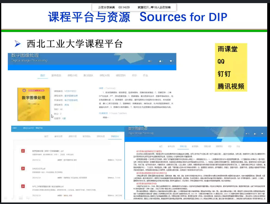 在教材等学习资料方面,精心挑选各类课程资料,除传统教材外还有与项目相关的期刊论文、录像、图片、评论以及其他影音资料等多种辅助内容,已全部上传到课程平台,为学生在线学习提供了丰富的自学资源。