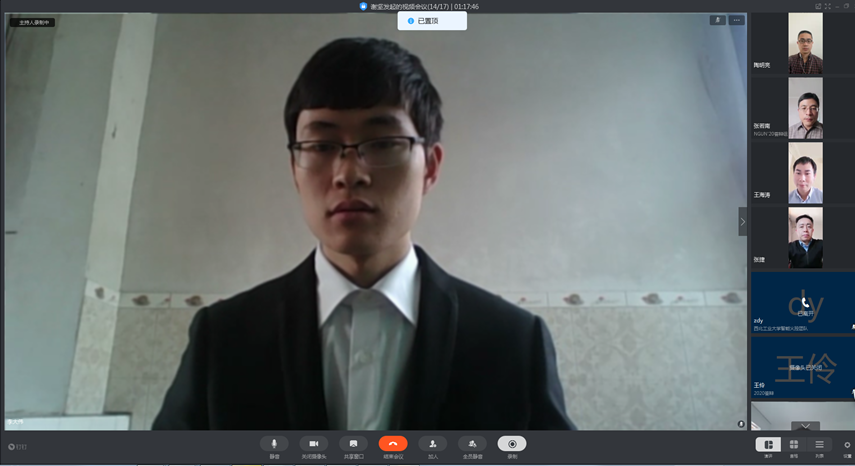 为了做好毕业答辩工作,把好研究生培养质量的最后一关,学院对毕业答辩工作实施方案进行逐项审核修订,成立了由院领导、学位分会委员、研究生督导、系主任组成的答辩督导小组,根据学科情况分配督导任务,对学院所有答辩实行百分之百覆盖,同时强化加强答辩秘书培训、强化视频答辩准备工作实施和强化答辩过程规范化。各答辩小组积极配合,认真开展线上答辩准备工作。2月16日至2月18日,学院所有答辩小组完成了视频答辩预演,2月19日,学院分7个督导小组对28个答辩小组的准备情况逐一进行了检查,学院书记、院长和三位副院长全部参加了检查工作,在此基础上,学院不断向答辩小组反馈学院内外的各种关于线上答辩的督导意见及经验总结,不断加强对线上答辩流程的准确、熟练掌握。2月26日, 学院举行了首批视频答辩,研究生院王鹏副院长、学院院长周德云教授、学校督查组督导袁朝辉教授以及答辩委员会专家和学生等共18人参加了本次线上答辩。本次答辩采用了钉钉软件,7位硕士生通过屏幕共享来远程实时地向专家和旁听师生汇报了自己的研究内容与成果,并在线互动交流,回答问题,整个答辩及问答互动过程交流顺畅,效果很好。本次答辩严格执行了FAKKU