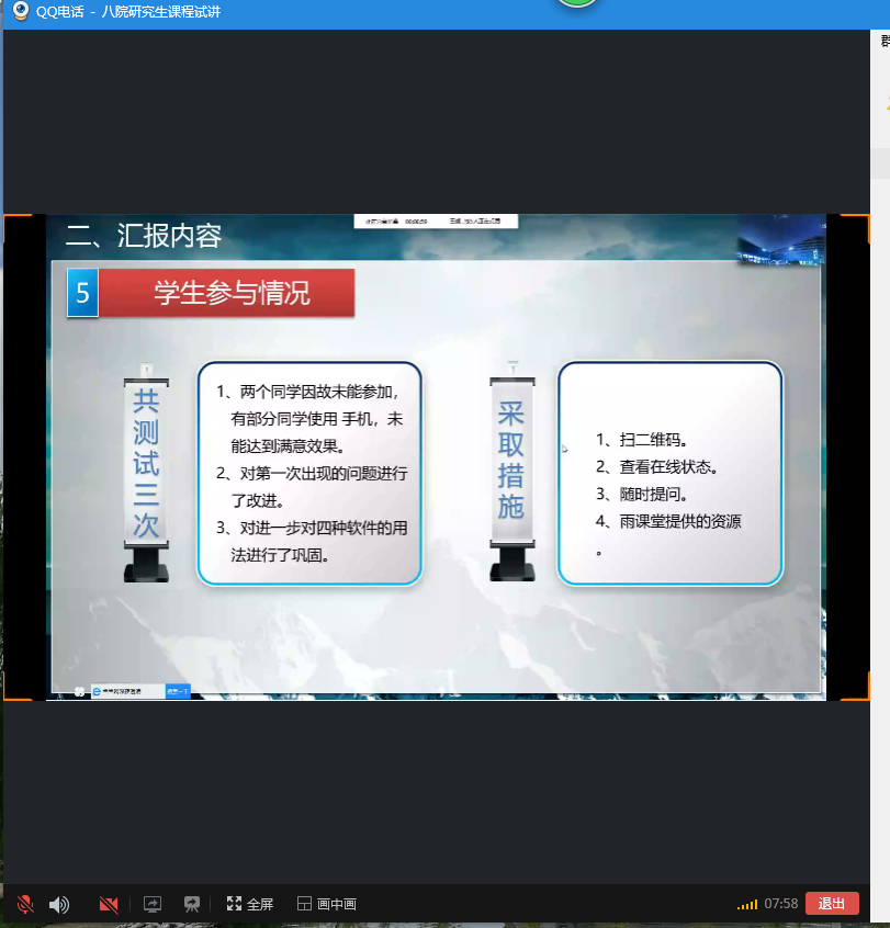硕士研究生毕业正式答辩标准,整体效果无异于现场答辩。最后,经答辩委员会无记名投票,全票通过7位同学的毕业论文答辩,并建议授予7位同学工学(程)硕士学位。作为学院首个公开视频答辩,本次答辩的顺利进行得益于教师、同学、校院两级督导、校院系领导、志愿者、教辅人员等的通力协作,也为学院后续的答辩工作提供了重要的参考和借鉴。截止3月2日,学院已有5个答辩小组、36名硕士生顺利完成线上答辩,各答辩小组的成功经验和应注意的问题也及时在答辩小组间进行分享,为后续视频答辩提供了极有价值的参考。