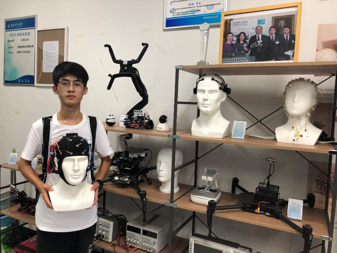 等单位协办。我校神经信息实验室负责人谢松云教授团队负责参赛人员的招募、指导、培训和组织管理等工作,经过长达三个多月的预赛选拔,我校有三位同学从华中赛区100余人中脱颖而出,取得决赛资格。8月25日,经过几天紧张激烈的角逐,我校樊江华同学在总决赛中获得技能赛顶叶脑机组一等奖和技能赛综合一等奖的好成绩。由于比赛现场不同于实验室,有诸多不可控因素,周围参观人流量比较大,声音嘈杂,另外还有其它设备的干扰,对选手影响很大,但由于前期的充分指导和训练,樊江华同学能够迅速调整状态,沉着应对,顺利完成比赛,这些良好的素质与他平时对学习的兴趣和科研的培养是分不开的,特别是他对脑科学研究有浓厚的兴趣,在本科学习期间就积极参与了谢松云教授团队的科研项目,经过学习和培训,该同学很好地掌握了脑机接口实验的范式和技巧,为他取得好成绩奠定了良好的基础。